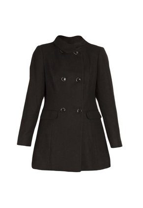 tiene cuello de solapa co doblez cruzado y cierre total de botones,