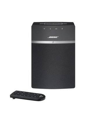 El sistema de música inalámbrico SoundTouch 10 le ofrece una forma sencilla de reproducción para todo el hogar. Además, es tan pequeño que puede colocarlo prácticamente en cualquier parte para reproducir millones de canciones de servicios de música, estaciones de radio por Internet y la biblioteca de música almacenada, todo con sonidos divertidos y nítidos. Incluso puede reproducir su música favorita al instante, sin un teléfono ni tableta. Simplemente presione una de las seis preconfiguraciones en la bocina o el control remoto para comenzar a escuchar su música.Apto para SmartTenga acceso a un mundo de entretenimiento al instante con este producto. Solo conéctese a internet y reproduzca películas, escuche música y acceda a una gran variedad de otro contenido.Sonido intenso y nítido en cualquier parte de su casaEsta bocina pequeña entra fácilmente en un estante o mostrador, para que usted pueda escuchar su música favorita mientras estudia, limpia o prepara la cena. Wi-Fi y Bluetooth incorporadaSe conecta a la red doméstica para acceder a toda su biblioteca de música digital y le permite conectarse de forma inalámbrica con su smartphone o tableta compatible.La aplicación Bose SoundTouch ofrece un control inalámbrico sencillo.Reproduzca música a través de servicios de música como Spotify, Pandora, iHeartRadio y Deezer desde su smartphone (se requiere descargar la aplicación).Entradas USB, auxiliares y 6 botones de preconfiguraciónConecte su smartphone o tableta para una reproducción de música con cable de manera inalámbrica y acceda a su música favorita al instante.Especificaciones Dimensiones del altavoz: 8.34" H x 5.56" W x 3.43" D. Peso del altavoz: 2.89 lbs. Dimensiones del control: 4.5" H x 1.75" W x 0.5" D. Peso del control: 1.76 oz.Conectividad: WiFi 802.11 b/g/n - Bluetooth. Formatos de audio: MP3, WMA, AAC, Apple Lossless. Puertos: Entrada AUX - UBS. Color: Negro.