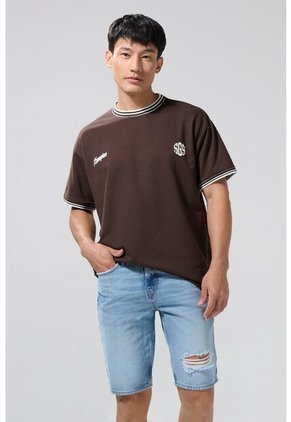 Bermuda para hombre tipo slim de jean azul medio cuenta con tiro bajo, desgastes localizados, rotos sutiles en frente, pretina sencilla con botón metálico y una silueta ajustada al cuerpo. Perfecta para una tarde con amigos, podrás combinarla con una camiseta sin mangas y crear un atuendo inspirador.