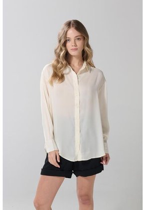 BLUSA CAMISERA OVERSIZE CON MANGA LARGA Y BOLSILLO, CIERRE CON BOTONES