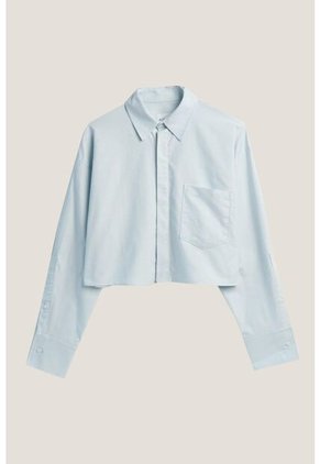 Blusa unicolor de silueta crop top para mujer cuenta con cuello camisero, cierre delantero con botones, manga larga y un fit que se ajustará al cuerpo en la medida precisa. Combínala con un jean push up negro, así crearás un look minimalista con el que te robarás más de un suspiro.