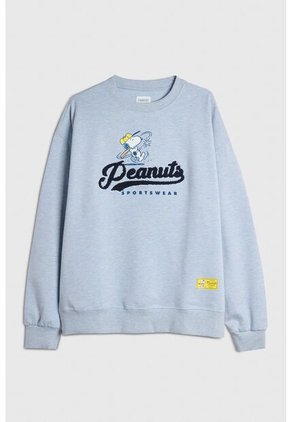 Buzo para hombre cuello redondo azul claro cuenta con manga larga, bordes de ruedo y puños tejidos en rib, diseño de Snoopy estampado en frente, hombro rodado y un fit ligeramente ajustado. Crea un outfit estilizado combinando esta prenda con un jean skinny, así serás la sensación en todo momento.