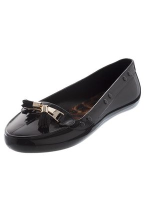 Baleta Top Moda color negro elaborado en PVC. Su diseño tipo slipper posee aplique de