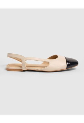 Calzado plano para mujer,Diseño bitono con cuerpo en tono crema y punta contrastada,Punta redondeada con acabado de charol brillante,Estructura destalonada con tira elástica posterior,Aberturas laterales que aportan frescura al pie,Suela plana y ligera para mayor comodidad al caminar,Plantilla con pespuntes decorativosEspecificaciones:Color: BlancoComposición: Capellada:Sintético 100% Forro:Sintético 100% Suela:Sintético 100% Plantilla:Sintético 100%Instrucciones de Lavado:No dejar en remojoLavar en agua fría separadamenteNo usar blanqueadorNo retorcerSecar a la SombraPlancha tibiaHecho en ChinaGarantía: 60 Días.