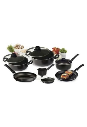 Completa tu cocina con nuestra Batería antiadherente Aliada, Elige la que mas se acomode a tu hogar y empieza a disfrutar la magia de cocinar Con nuestra Batería antiadherente Aliada los alimentos siempre conservarán sus nutrientes y podrás preparar diferentes recetas. •Cuerpo en aluminio con antiadherente. • Ideal para preparar comidas saludables y bajas en grasa. • Fondo grafilado para mayor estabilidad al cocinar y mejor distribución de calor en la base. •Mango en baquelita resistente al calor. •Tapa de vidrio con pomo en Polipropileno. •Tapa en aluminio con pomo en baquelita para la cacerola de 16 cm. •Garantía de 1 año. 4 piezas •1 olla de 18 cm ancho, 1 pero de 18 cm de ancho, 1 sartén de de 18 cm mas 1 tapa de vidrio. 7 piezas •1 olla de 24 cm, 1 perol de 16 cm de ancho, 1 sartén de 24 cm, 1 caserola de 16 cm. 9 piezas •1 olla de 24 cm de ancho, 1 olla de 20 cm de ancho, 1 perol de 16 cm, 1 caserola de 16 cm de ancho, 1 sartén de 24 cm de ancho. 10 piezas •1 olla de 24 cm de ancho, 1 olla de 20 cm de ancho, 1 perol de 16 cm, 1 caserola de 16 cm de ancho, 1 sartén de 24 cm 1 perol de 10 cm de ancho. 11 piezas •1 olla de 24 cm de ancho, 1 olla de 20 cm de ancho, 1 sarten de 24 cm de ancho 1 perol de 16 cm de ancho, 1 caserola de 16 cm de ancho, 1 perol de 10 cm de ancho y una plancha asadora de 23 cm de ancho. Materiales del producto •Aluminio: 70 %. •Baquelita: 10%. •Vidrio: 19%. •Polipropileno: 1%. Recomendaciones •Realiza el curado de los antiadherentes antes de usar por primera vez; engrasa el producto con unas gotas de aceite y distribúyelo por toda la superficie. Luego calienta a fuego medio por un minuto. •Usa utensilios de nylon Incametal®, ya que el uso de utensilios de metal raya con facilidad el antiadherente, disminuyendo su vida útil. •No uses objetos afilados o puntiagudos sobre las piezas recubiertas de antiadherente. •Lava con esponjas y jabones suaves, no utilices esponjas abrasivas. •Cocina a fuego medio o bajo, evita los choques térmicos, es decir, cambios drásticos de temperatura. •Evita lavarlo con agua fría mientras el producto se encuentre caliente. •Guarda el antiadherente protegiéndolo de los rayones de otros elementos. Garantía -1 año de garantía en el producto La línea de productos Universal está pensada para darte felicidad en la cocina y en el resto del hogar. Sabemos que si todo es fácil, todo es más feliz.