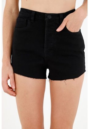¡Perfecta para tus looks casuales! Unas bermudas que te harán lucir cómoda, moderna y única. Características- Color: negro - Tiro alto - Con apliques - Material: Algodón 71% Poliéster 28% Viscosa 1% Sobre el fit Perfecta para darte toda la frescura que necesitas en tus días cálidos.