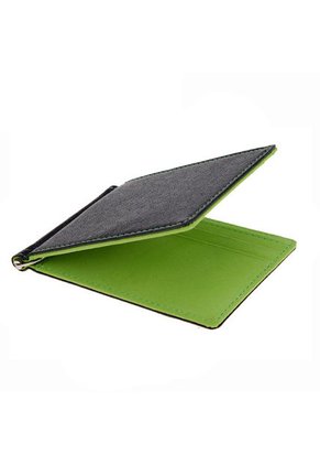 Billetera Clip Hombre Cuero Sintético - Color Negro Verde