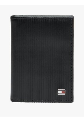Billetera Negra De Cuero Con Monedero Y Logo Tommy Hilfiger