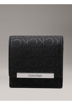 Billetera Negra De Plegado Triple Con Logo Pequeño Calvin Klein