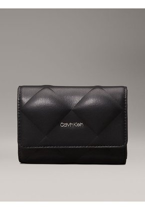 Billetera Negra Pequeña Acolchada De Plegado Triple Con RFID Calvin Klein