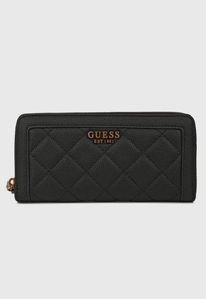 Un complemento elegante para cualquier bolso. Una billetera grande en piel sintética granulada, siempre juega un papel importante en tu look casual. Este accesorio cuenta con un cierre de cremallera y un emblema con el logotipo “GUESS Est 1981” en su panel frontal. Bolsillo con compartimentos diferenciados para separar cada elemento que no puede faltar en tu día a día.