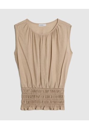 Blusa para mujer,Silueta sin mangas (sisa),Cuello redondo con detalle de recogido,Ajuste elástico tipo nido de abeja en la cintura,Pequeño bolero en el ruedo,Textura corrugada en toda la prenda,Tejido fresco y livianoEspecificaciones:Color: CaféComposición: Tela Primaria:Rayón 85% Poliéster 15%Tipo de cuello: Cuello RedondoTipo de manga: Sin MangasInstrucciones de Lavado:No dejar en remojoLavar en agua fría separadamenteNo usar blanqueadorNo retorcerSecar a la SombraPlancha tibiaHecho en ColombiaGarantía: 30 Días.