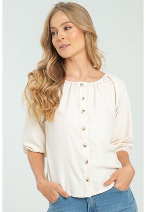 Blusa en twill fondo entero, escote redondo, manga 3/4 con perilla completa con botón, silueta amplia. RAGGED es una empresa competitiva y sólida que cuenta con más de 30 años de experiencia con su propuesta de diseño y moda, comprometida con su misión de vestir a la mujer en sus diferentes estilos de vida resaltando su esencia femenina. Su compromiso con la mujer, la clara definición de las líneas de vestuario y los productos que satisfacen los deseos de la mujer llevan a RAGGED a poner en sus puntos de venta colecciones renovadas semanalmente, logrando así una presencia altamente competitiva entre las marcas internacionales.