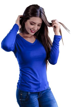 Blusa Color Azul Electric Bocared Manga Larga Minerva