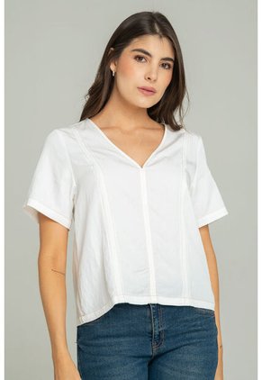 Blusa en tejido plano fondo entero con costuras en contraste, manga corta, escote V, silueta semi ajustada. RAGGED es una empresa competitiva y sólida que cuenta con más de 30 años de experiencia con su propuesta de diseño y moda,_x000d_ comprometida con su misión de vestir a la mujer en sus diferentes estilos de vida resaltando su esencia femenina._x000d_ Su compromiso con la mujer, la clara definición de las líneas de vestuario y los productos que satisfacen los deseos de la mujer llevan a RAGGED_x000d_ a poner en sus puntos de venta colecciones renovadas semanalmente, logrando así una presencia altamente competitiva entre las marcas internacionales.