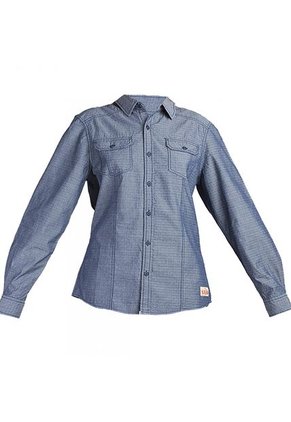 posee delicadas costuras visibles, manga larga, puños con cierre tradicional, cuello camisero de solapa, bolsillos con tapa en la parte delantera
