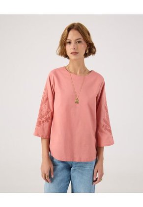 Blusa De Mujer Manga 3/4 Patprimo Color Rosa #30123594.Blusa con Bordado Floral en Mangas para mujer,Confeccionada en una silueta recta y fresca con detalle bordado floral tono a tono, diseño con abertura en la parte posterior con botón pequeño, que aporta un acabado sutil y elegante,Manga 3/4,Cuello redondo,,,,,,Especificaciones:Color: RosaComposición: Tela Primaria:100% AlgodónTipo de cuello: Cuello RedondoTipo de manga: Manga 3/4Instrucciones de Lavado:No dejar en remojoLavar en agua fría separadamenteNo usar blanqueadorNo retorcerSecar a la SombraPlancha tibiaHecho en Colombia Diseñado para ofrecer una experiencia superior en comodidad y estilo, este producto refleja el compromiso de Patprimo con la calidad. Su diseño moderno se adapta perfectamente a diferentes ocasiones, brindando una apariencia cuidada sin sacrificar la comodidad. Ideal para quienes buscan funcionalidad con un toque de moda.• Calidad garantizada: Materiales seleccionados por su durabilidad y suavidad al contacto con la piel.• Ajuste cómodo: Se adapta a la forma del cuerpo permitiendo libertad de movimiento.• Versatilidad: Perfecto para salidas casuales, uso diario o simplemente estar cómoda en casa.
