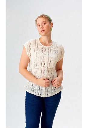 Blusa Para Mujer Manga Corta Beige Marca L&H Ref. 1F412686
