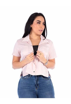 Blusa en satín para mujer, unicolor, manga corta con cuello, bolsillos frontales, cierre en broches.¡Quedarás tan fascinada como nosotros! Una prenda top que se convertirá en tu mejor aliada entre semana y podrás combinar sin complicaciones. Su diseño oversize te dará un confort único a donde vayas. Compuesta 94% rayon 6% elastano