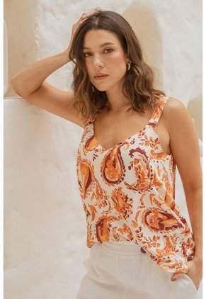 Blusa en tejido plano estampado, de tiras de 2.5cms, escote en V tanto en delantero como en posterior, aberturas de 6cms a lado y lado del ruedo, ruedo de 0.8cms, silueta semi ajustada. RAGGED es una empresa competitiva y sólida que cuenta con más de 30 años de experiencia con su propuesta de diseño y moda,_x000d_ comprometida con su misión de vestir a la mujer en sus diferentes estilos de vida resaltando su esencia femenina._x000d_ Su compromiso con la mujer, la clara definición de las líneas de vestuario y los productos que satisfacen los deseos de la mujer llevan a RAGGED_x000d_ a poner en sus puntos de venta colecciones renovadas semanalmente, logrando así una presencia altamente competitiva entre las marcas internacionales.