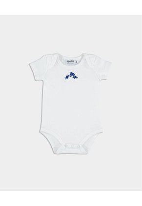 Body para bebé en algodón, con detalle en tonos azules, bordado en el pecho y sistema de abotonadura entre las piernas.