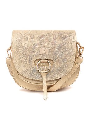 metalizada con el nombre de la marca. Cuenta con cierre botón magnético y correa