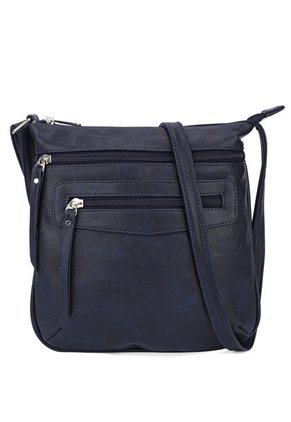 Bolso Manos Libres azul, elaborado en sintético (poliuretano), diseño casual con textura lisa. Detalles alusivos a la marca y finas costuras visibles. Tiene compartimiento interno con cremallera, 2 bolsillos externos con cremallera, bolsillo posterior y correa manos libres.Sus medidas son alto 26 cm, ancho 27 cms y fondo 1 cm.Producto Colombiano