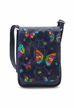 Bolso Manos Libres C299 Cuero Tala Azul Mariposas