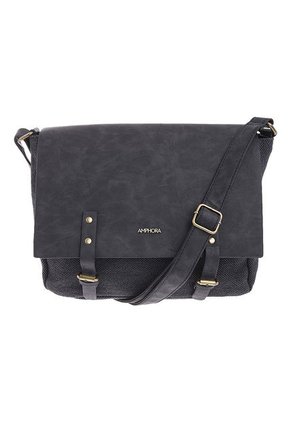 Bolso manos libres negro Amphora, elaborado en PVC, algodón y poliéster, diseño casual de textura estilo tejido con revestimiento tipo semi corrugado, detalle alusivo a la