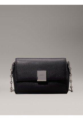 Bolso Negro Cruzado Con Placa Y Cadena Calvin Klein