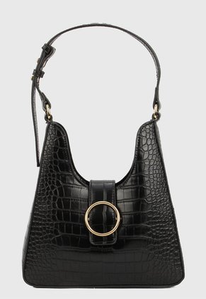 Bolso Mango tipo satchel Fénix elaborado en material sintético con textura animal skin, asa semi rígida y compartimento principal con broche.