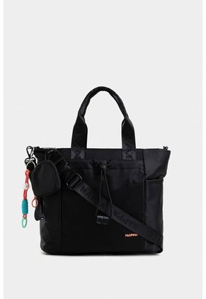 Bolso tipo baguette mediano con cierres translúcidos pero sutiles que permiten ver el forro en contraste. Cuenta con doble cargadera brandeada y grfan variadad de bolsillos, tanto laterales como frontales. La cargadera larga tiene un argolla para conectar un monedero el cual es removible. Cuenta con llavero removible, herrajes metálicos pintados y forros en contraste. Ideal para darle un look unico a tus outfits.