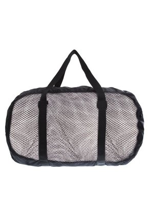 negro, elaborado en poliéster, diseño rectangular en malla lateral, costuras