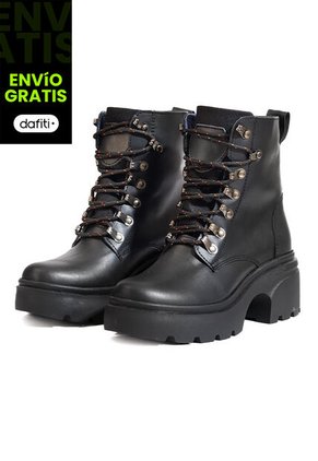 Detalles que definen su carácter: • Estilo: Bota alta con amarre tipo hiking y herrajes metálicos decorativos. • Material: Cuero 100% natural, de acabado mate y textura suave. • Suela: En TR (termoplástica), ligera, antideslizante y resistente al desgaste. • Tacón: De 3½ cm, que brinda altura y estabilidad. • Forro interno: Acolchado para máximo confort. • Origen: Hecho en Colombia.