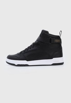 Bota Lifestyle Negro-Blanco-Dorado Puma RBD Game La bota casual RBD Game tiene su inspiración en el baloncesto. Este calzado color negro que diseña Puma cuenta con una elaboración de material de cuero suave ultra resistente, y un cierre de gancho y bucle en la parte superior. Tiene un sistema de amarre de pasadores y lengüeta para mayor comodidad. La parte superior de este calzado está hecha con al menos un 20% de materiales reciclados. La suela de goma aporta una gran comodidad y cuidado a tu pie. Ya sea en la cancha o saliendo con amigos, estas botas definitivamente se convertirán en tus favoritas. Especificaciones:• Tecnología: SoftFoam+: Cómoda plantilla de PUMA para una comodidad instantánea y duradera que proporciona una amortiguación suave a cada paso.Cluster: Casual: Versátiles, transmiten simplicidad, naturalidad y comodidad, se utilizan en contextos que no exigen el respeto de un código de vestimenta.Origen: Producto Importado Cuidado y Lavado: Lave a mano, use jabón suave, no retuerza, no deje en remojo, seque a la sombra.