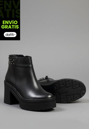 La capellada en cuero colombiano —trabajada con precisión artesanal— ofrece una textura elegante y resistente, hecha para quienes no siguen tendencias: las imponen. El botín está decorado con taches metálicos, un detalle audaz que le da actitud y eleva cualquier look urbano o nocturno.