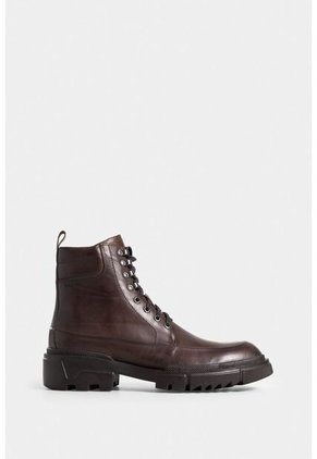 En un espíritu de renovación y atemporalidad, nuestras botas de cuero liso natural y semibrillante ofrecen una atadura casual y elegante, con un efecto encerado que las convierte en piezas artesanales únicas y exclusivas. Su forro de cuero y cordón redondo en algodón encerado a tono o en contraste garantizan el ajuste perfecto. Además, la suela tractorada tipo chunky liviana en poliuretano, ofrece comodidad y durabilidad, perfectas para el dinamismo del día a día. Su plantilla anatómica sostenible y antibacterial asegura tranquilidad y confort en el uso, además, evoca una inspiración retro industrial que las dota de ímpetu y durabilidad en el tiempo.