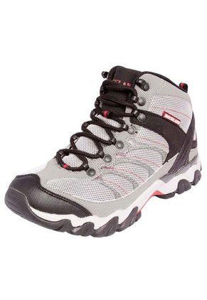 Botas Rockland color gris, negro y rojo , elaborado en excelentes materiales; son zapatos con un estilo muy sport que brinda comodidad a tu pie, tienen punta redonda con el empeine acordonado, cuello alto, con un refuerzo en la parte delantera que proporciona protección contra los golpes. Además