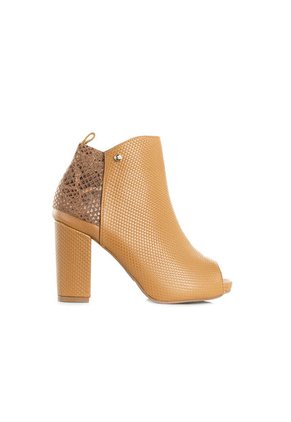 Botín color miel despuntado de tacón alto para dama, COSMOS CM2495Material externo: CueroMaterial interno: TextilAltura del tacón: 7 1/2Tipo de plantilla: FijaOrigen del producto: Nacional (Colombiano)Horma: RedondaGénero: FemeninoGarantía: 3 mesesColor: Miel