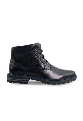 Botin con cordones en cuero con suela de 3 cm en sintético y forro interno en textil.