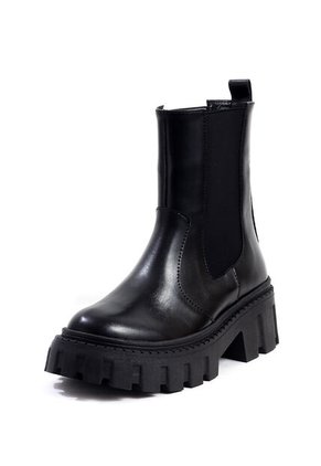 El profundo color negro y el elástico lateral reforzado garantizan un ajuste perfecto y un estilo inigualable. La suela robusta y el tacón ancho no solo marcan tendencia, sino que ofrecen una comodidad sorprendente, para que tu día a día sea tan imparable como tú.