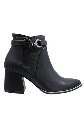 Botines Tacón De Cuero Aplique Botines Tacón De Cuero Aplique Negro 34 VÉLEZ