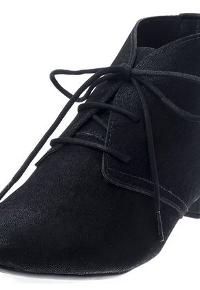 Botines Moleca color negro, elaborados en textil, con costuras finas y delicadas, acordonado en el empeine, ésta bota tiene una altura de 11 cm, lleva forro en material textil y sintético, con un tacón bajo y suela en sintético. Calzado casual que podrás lucir con jeans y pantalones.