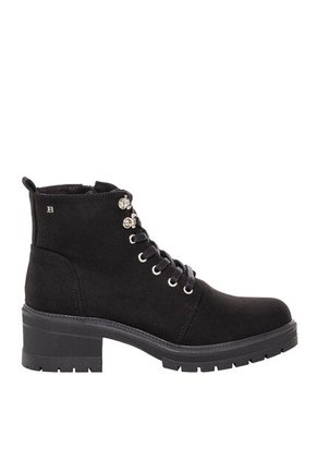 Botines con cordones para mujer de la marca BOSI, confeccionados en textil con moderno diseño, tiene sutiles detalles en color metálico que combinan perfectamente con el negro, este calzado tiene un forro en textil que proporciona alta sensación de transpirabilidad, un cierre en cordones y cremallera lateral que brindan un óptimo ajuste al pie, además un tacón grueso de 5.7 cm de alto con el que te sentirás segura en cada paso.Capellada : TEXTILForro : TEXTILSuela : TRPlantilla : CUEROPaís de origen : COLOMBIARegistro SIC : 860520243Nombre del fabricante y/o importador: COMERCIALIZADORA BALDINI SA. NIT 860.520.243-4Es importante tener en cuenta que los colores de los productos pueden variar con respecto a las imágenes o fotografías publicadas
