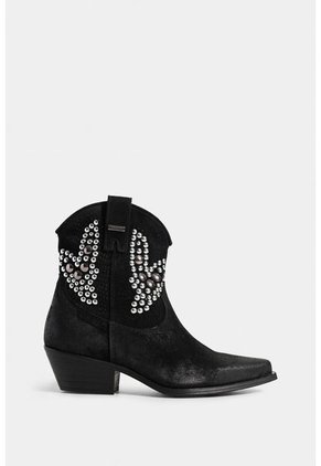 De encanto retro y detalles contemporáneos, nuestras botas elaboradas en carnaza de lujosa suavidad, hacen gala de nuestro expertise en el trabajo manual del cuero, con chapetas marcadas en láser, tacón de lujo forrado y su acabado en la caña con taches metálicos niquel negro, quienes le dan un fino acabado a una silueta de corte western que toma sus formas de una tendencia que nunca pasa de moda. Llévalas con todo tipo de looks, desde outfits holgados de corte bohemio, hasta sedas y pantalones culotte para outfits más formales. ¡Piezas de lujo artesanal que por su versatilidad se vuelven indispensables en nuestro guardarropa!