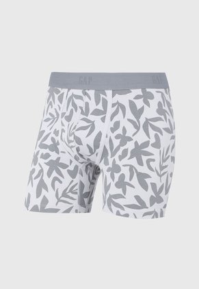 Bóxer de la marca GAP. Es un modelo bicolor que ha sido confeccionado en algodón suave y transpirable, presenta una cintura elástica la cual imprime sobre ella detalles del logo; trae consigo estampados integrales alrededor de la prenda.