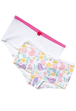 Bóxer Paq X2 Femenino Infantil ¡Vive la nueva tendencia del mundo de la moda! Te presentamos una colección llena de textura y estampados perfecta para tu día a día y siéntete dando un primer paso al estilo. Recomendación: Recuerda que la talla en el empaque y en el producto puede diferir con la numeración colombiana, esto se debe a las medidas utilizadas por el país de origen de cada producto. Te recomendamos consultar la tabla de medidas para que escojas la talla correcta. Los productos interior como pantys, bodys y cacheteros no tienen cambio. Origen: Producto Nacional.