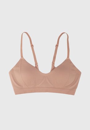 Bralette de tirantes ajustables en los hombros. Modelo disponible en color nude; presenta un dobladillo acanalado. Ha sido confeccionado en nylon y elastano.