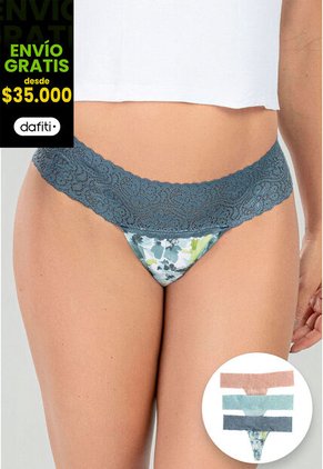 Brasilera Pack X3/Franja Elástica En Cintura/Acabados Sin Costuras/ Refuerzo Interno Con Algodón / Elaboradas En Poliéster Lycra Y Franja Elástica ¡Vive la nueva tendencia del mundo de la moda! Te presentamos una colección llena de textura y estampados perfecta para tu día a día y siéntete dando un primer paso al estilo. Recomendación: Recuerda que la talla en el empaque y en el producto puede diferir con la numeración colombiana, esto se debe a las medidas utilizadas por el país de origen de cada producto. Te recomendamos consultar la tabla de medidas para que escojas la talla correcta. Los productos interior como pantys, bodys y cacheteros no tienen cambio. Origen: Producto Nacional.