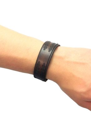 Lleva contigo a todas partes esta manilla elaborada en cuero, perfecta para tus looks casuales. Diseño unicolor con tirilla de adorno. Herrajes metálicos que permiten graduar la manilla y ajustarla a tu gusto.